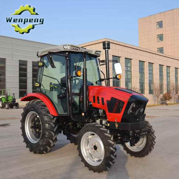 85-konny ciągnik kołowy Wenpeng może być wyposażony w różne maszyny rolnicze, takie jak ładowarki, koparki, rozdrabniacze drewna, koparki rowów, kosiarki, pługi, grabie, przyczepy, prasy itp. do wykonywania różnych prac polowych.
